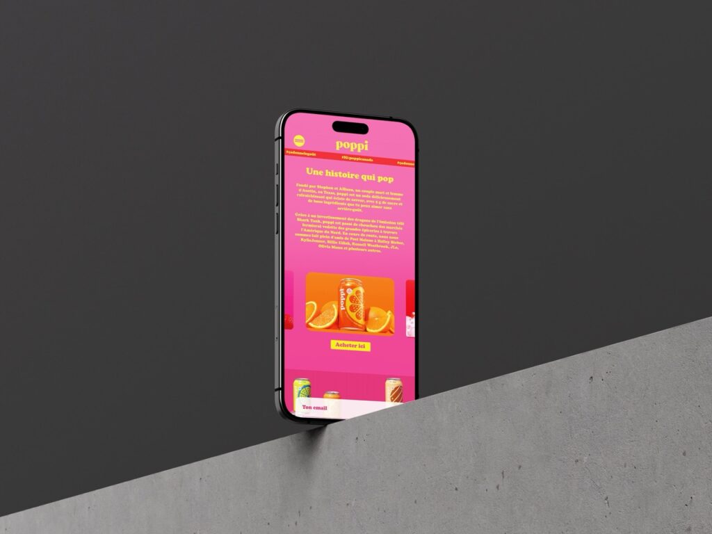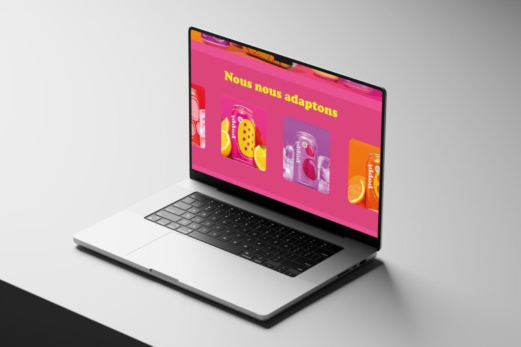 Ce projet consiste en une interface web, déclinée pour ordinateur et mobile, réalisée pour la compagnie Poppi. Je l’ai développé lors de ma deuxième année d’études en graphisme. Pour sa conception, j’ai utilisé différents logiciels, notamment Adobe XD pour la maquette numérique et Illustrator pour le traitement des visuels.